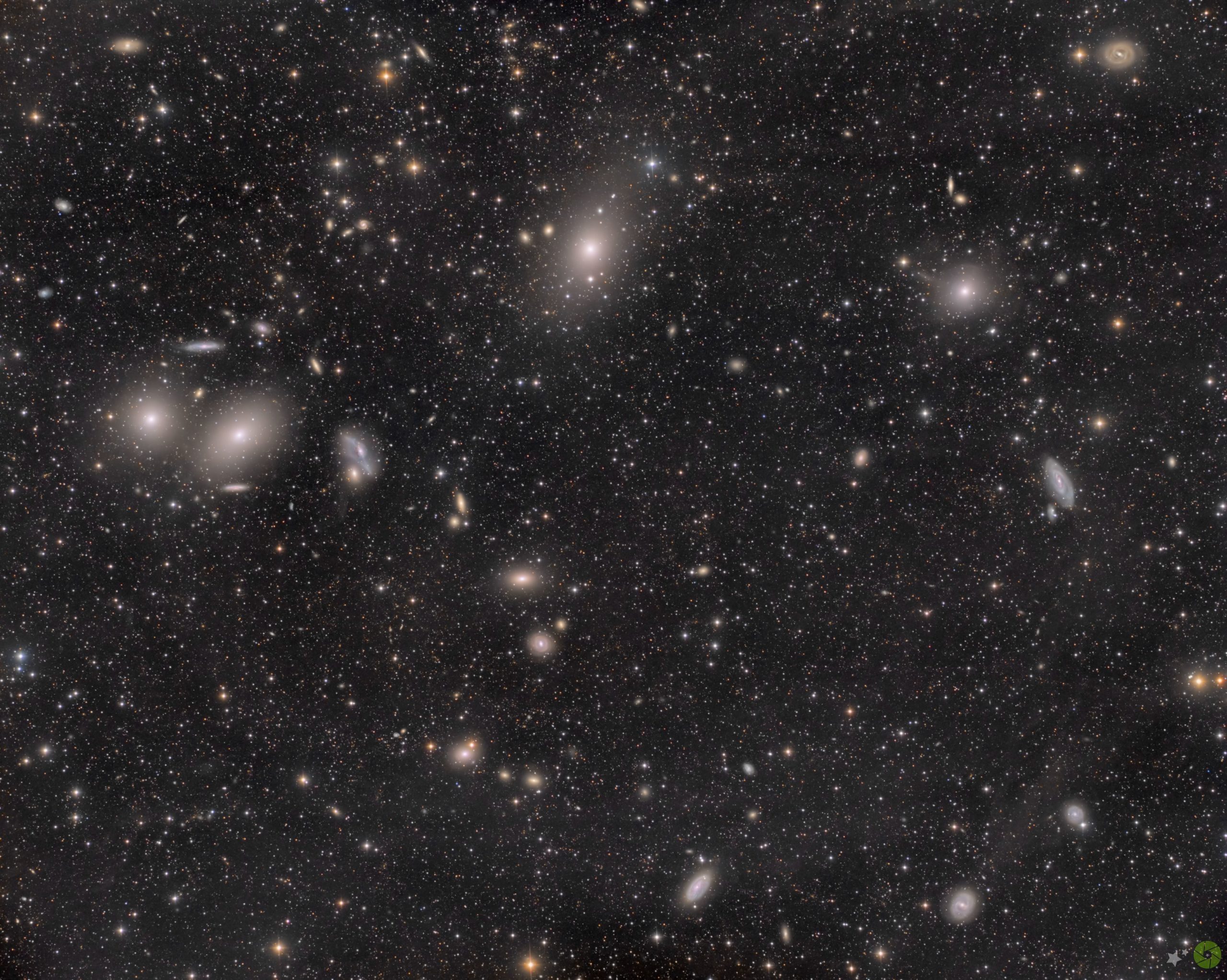 Solamente del catálogo Messier, que contiene 101 de los objetos más brillantes visibles en en hemisferio norte, 8 son visibles en la imagen. Y todos ellos concentrados en un campo de solo 4º. De los catálogos NGC e IC se pueden identificar varias decenas. Y galaxias más débiles incluidas en catálogos como PGC son identificables un número casi incontable de ellas. Bueno vale… me da mucha pereza…